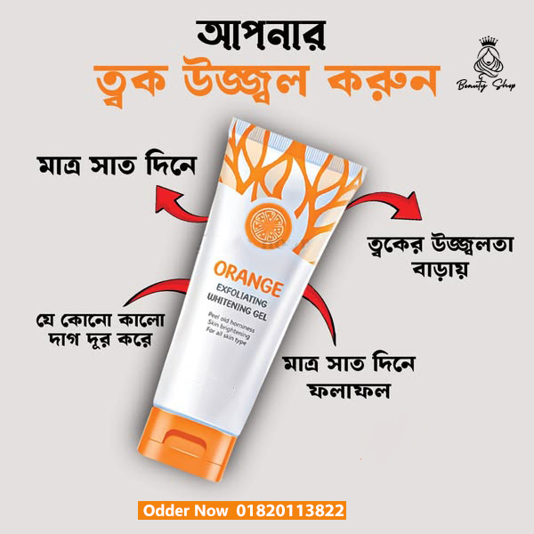 WARNING: সামান্য ২০০ টাকা বাঁচাতে গিয়ে নকল পণ্য কিনে প্রতারিত হবেন না। Beauty Shop নিয়ে এসেছে অথেন্টিক অরিজিনাল Orange Exfoliating Whitening Gel, আমরা নিজেরাই সরাসরি আমদানিকারক, এক টাকাও অগ্রীম পেমেন্ট না করে অরিজিনাল পণ্য বুঝে নিয়ে তারপর পেমেন্ট করবেন।